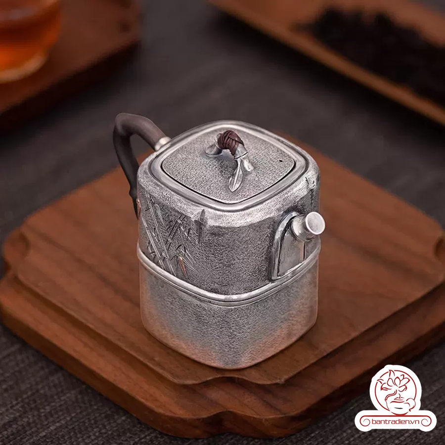 Ấm bạc pha trà nguyên chất chế tác thủ công AB011.