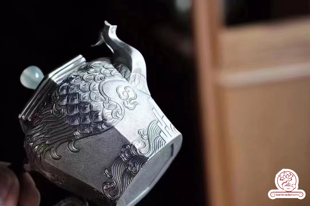 Ấm pha trà bạc nguyên chất cao cấp chế tác thủ công giúp giữ trọn hương thơm và sắc vị trà AB041