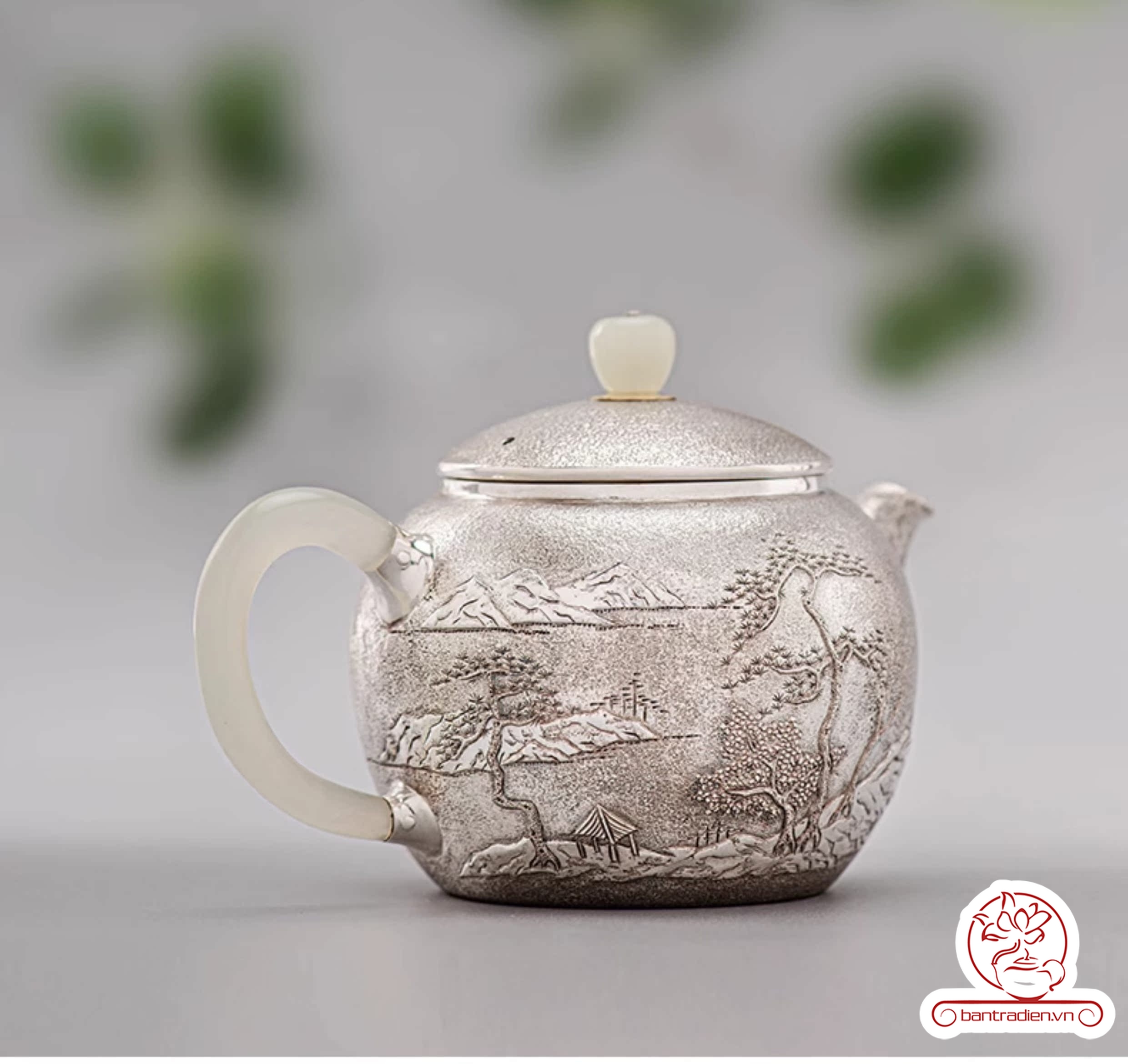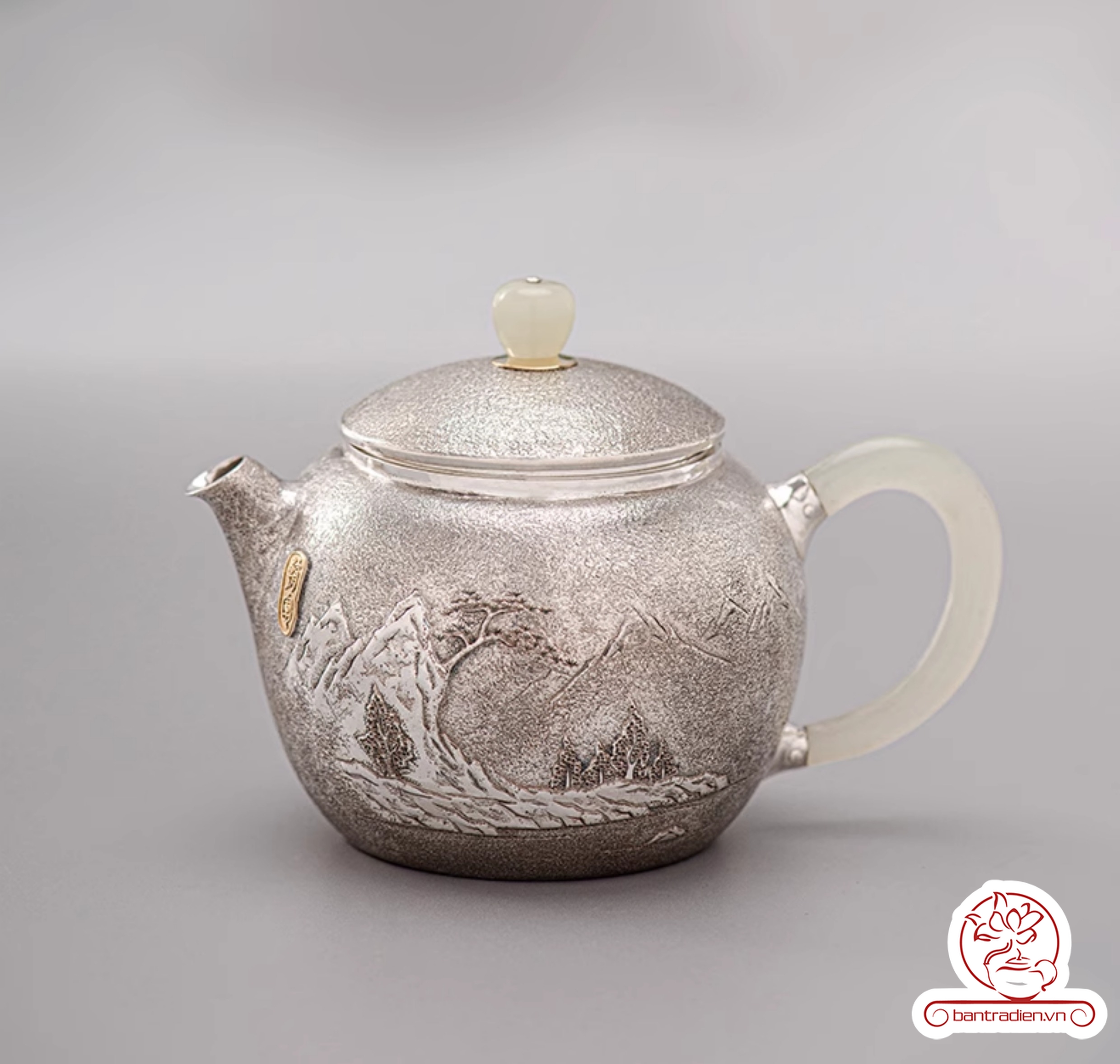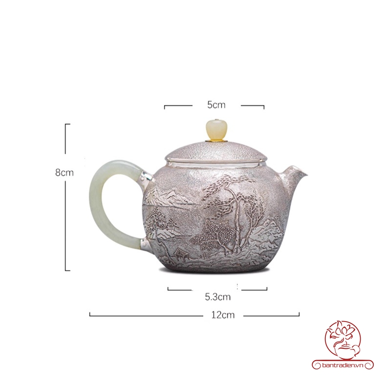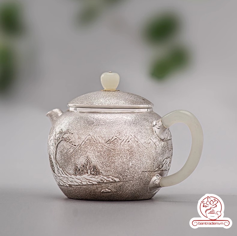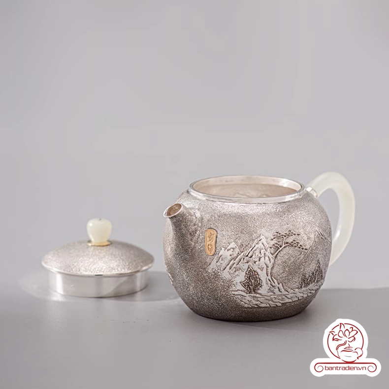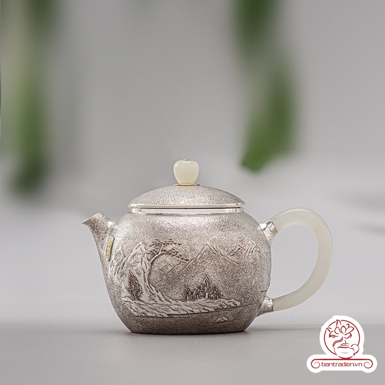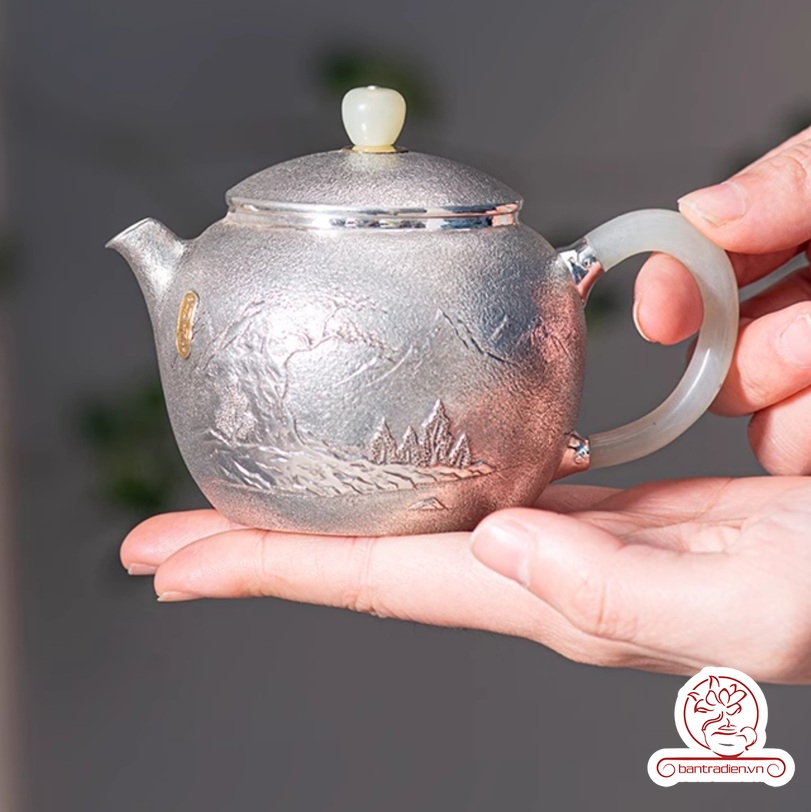 Ấm bạc pha trà nguyên chất chế tác thủ công AB054.