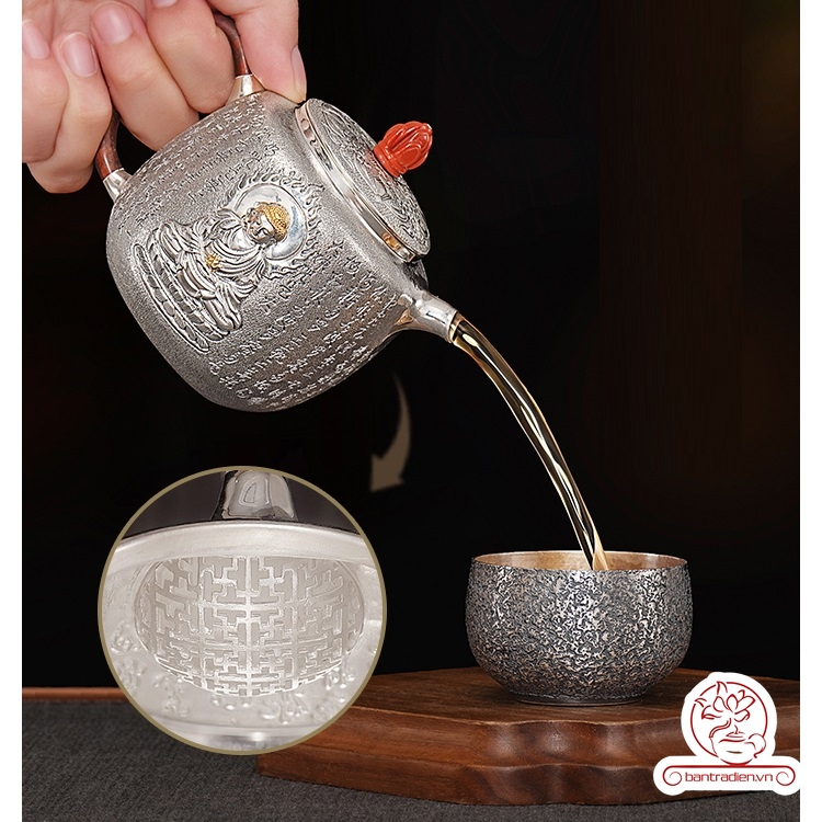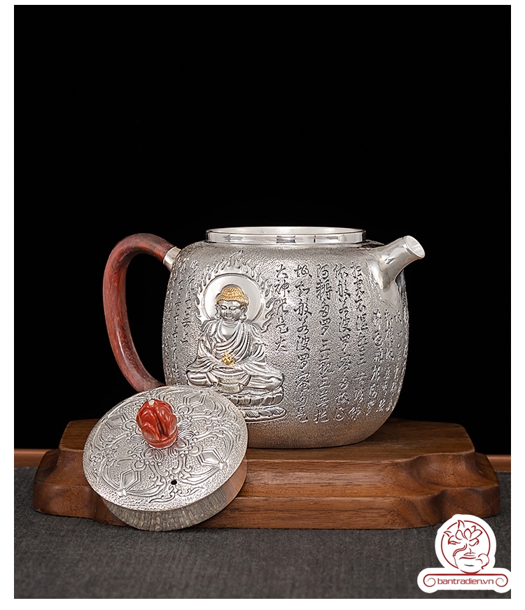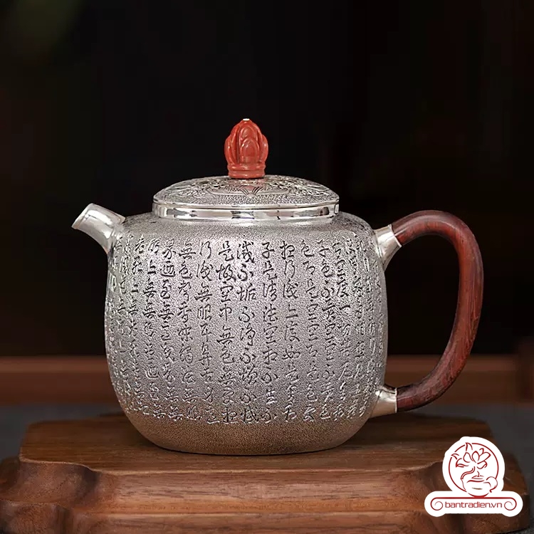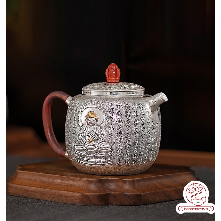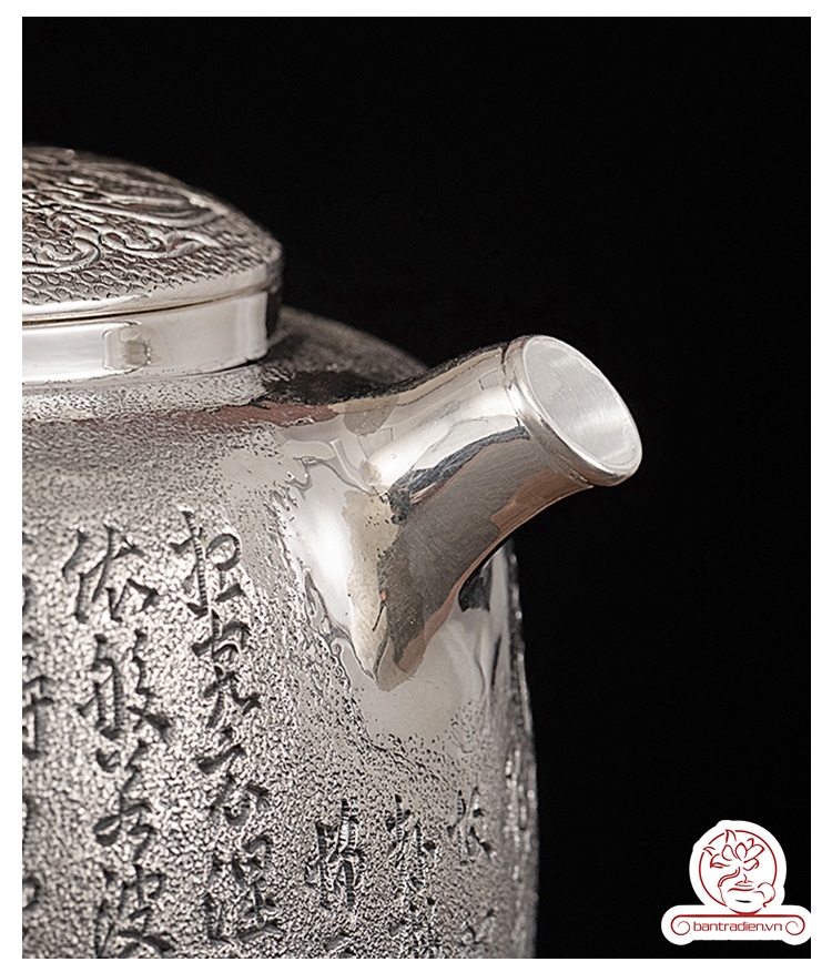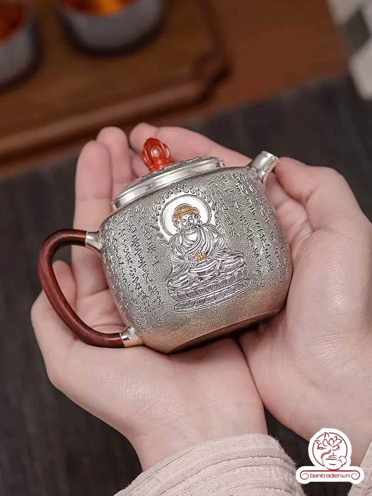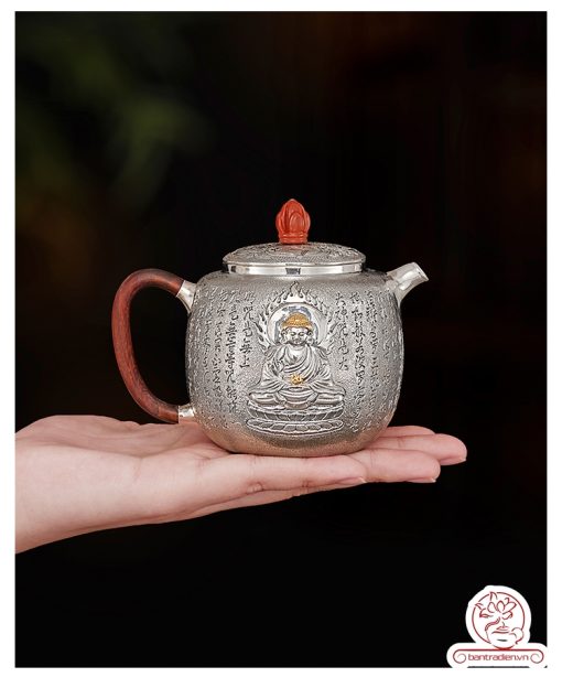 Ấm bạc pha trà nguyên chất chế tác thủ công AB038.