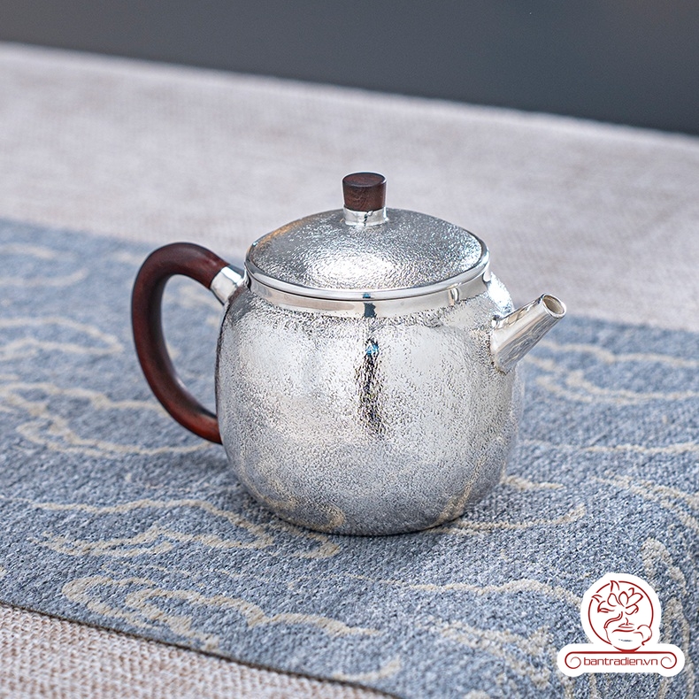 Ấm bạc pha trà nguyên chất chế tác thủ công AB050.