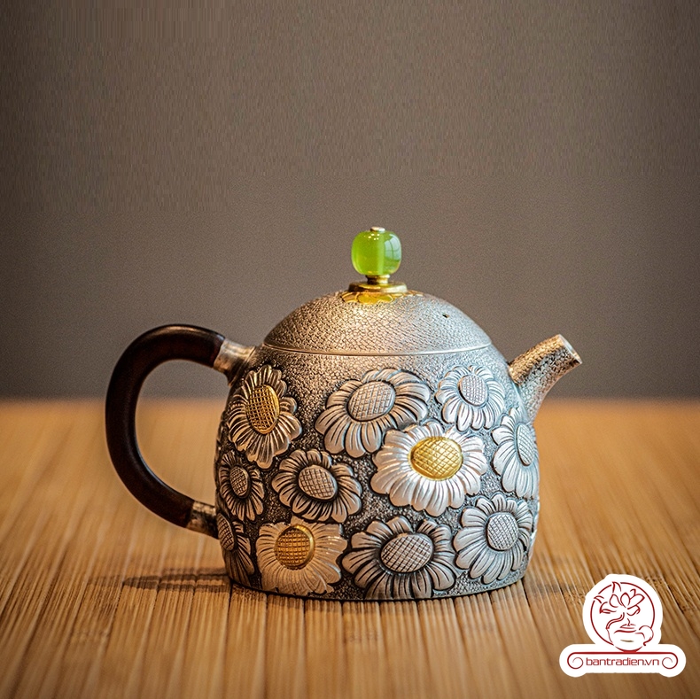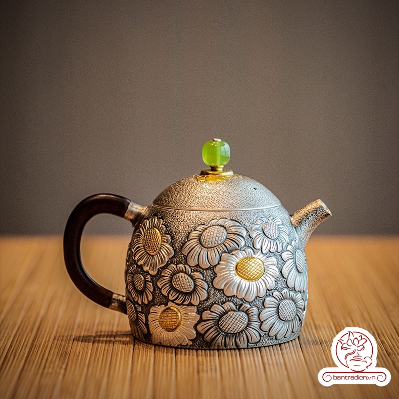 Ấm pha trà bạc tinh xảo thanh tao cho không gian trà AB051.