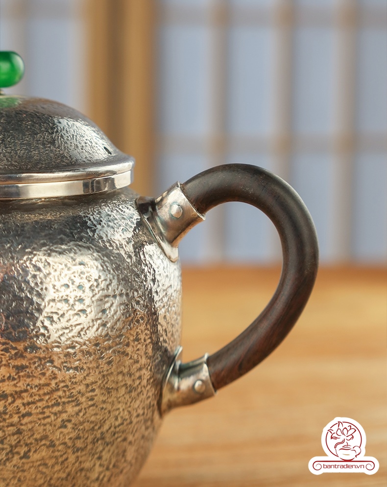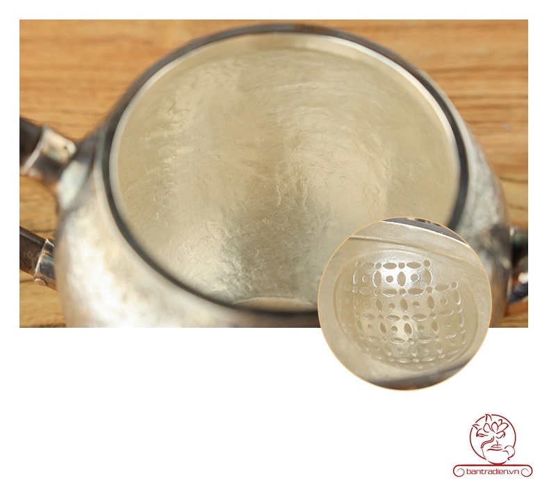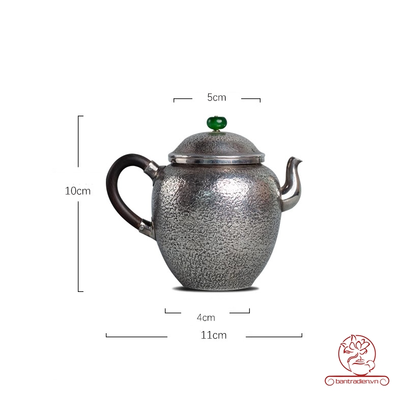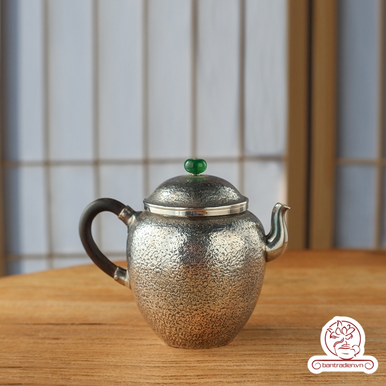 Ấm pha trà bạc nguyên chất chế tác thủ công AB052.