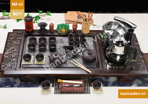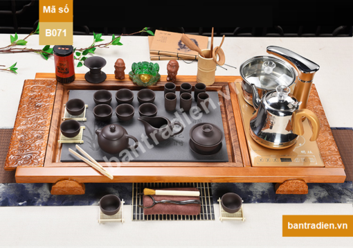Bộ bàn trà điện thông minh B071 mang phong cách thiết kế và nhiều họa tiết truyền thống. B062 được làm hoàn toàn bằng gỗ tự nhiên 100% mặt ốp đá, kèm nhiều tiện ích: