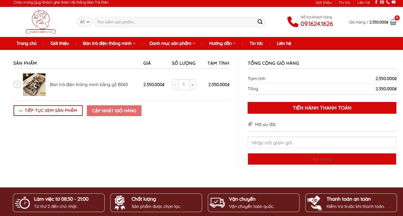 Trường hợp ấn chọn Thêm vào giỏ hàng, Quý khách vào biểu tượng Giỏ hàng phía trên bên phải màn hình để xem các sản phẩm mình đã chọn để điều chỉnh số lượng cần mua.